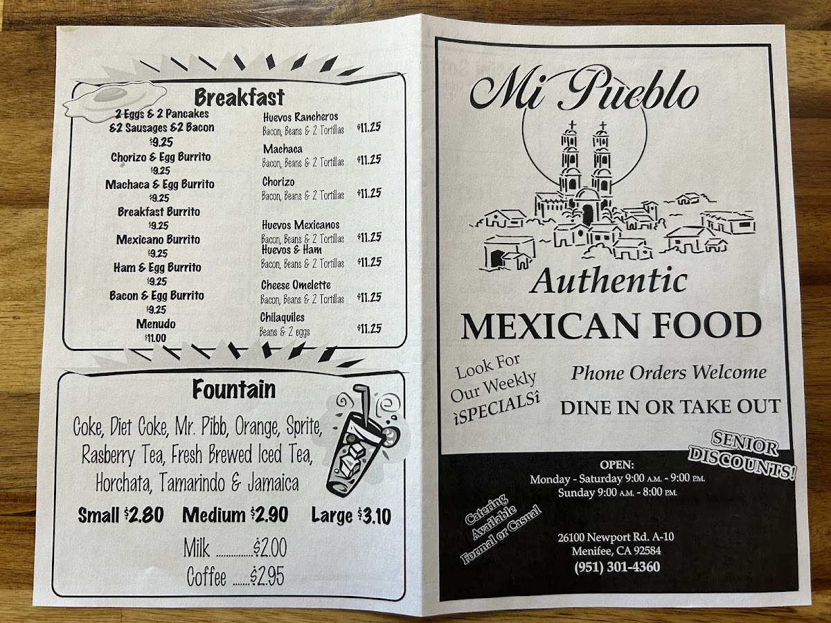 If you're in the mood for vibrant, mouthwatering flavors, the Mi Pueblo Authentic Menu has just what you need. Located at 26100 Newport Rd A 10 in Menifee, CA, this charming spot brings the heart of Mexican cuisine straight to your table. From sizzling fajitas to tender tacos and savory enchiladas, each dish is crafted with care and packed with bold, traditional flavors. Whether you’re craving something spicy or something on the milder side, there’s a wide range of options to satisfy every palate. Fresh ingredients and classic recipes make every bite feel like a trip to the heart of Mexico. So grab a seat, dig in, and let the deliciousness of the Mi Pueblo menu take you on a flavorful journey.
